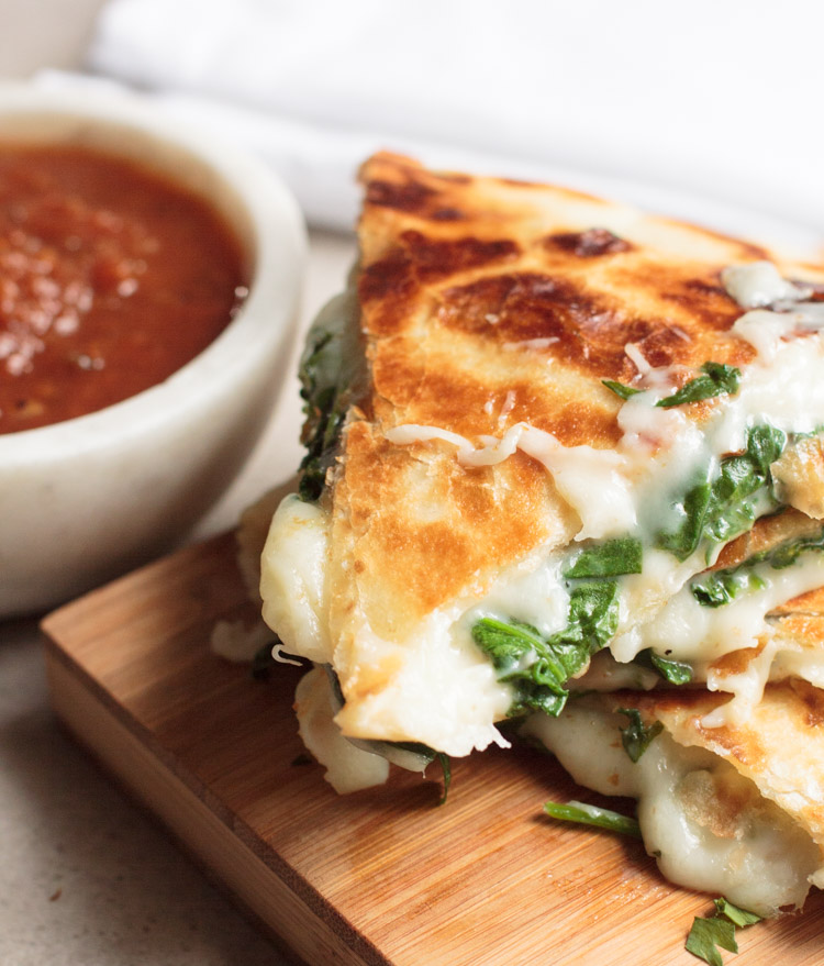 With the sheer amount of Chipotles and Taco Bells everywhere (not to mention Tex Mex is life), I imagine you are no stranger to quesadillas. If not, they’re very simple. Tortilla, cheese, and spinach all melted together.