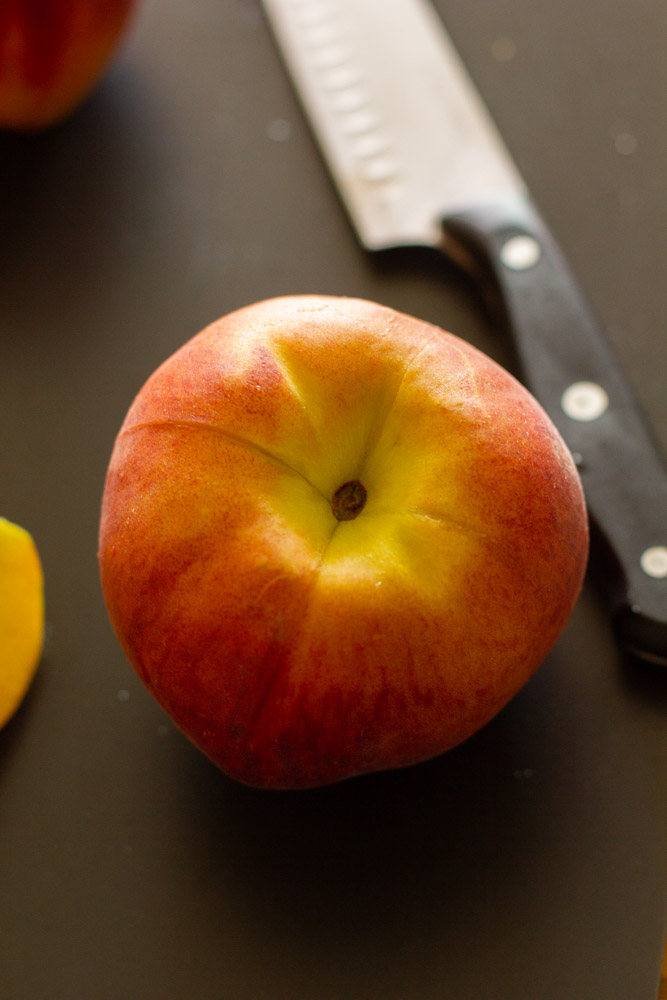 If you are still having a tough time, don’t feel bad about making another cut around the center of the peach – this should give you 8 equal portions. This recipe will work with any of these cuts. Just have fun (and be safe)!